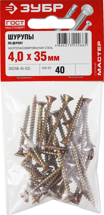 ЗУБР 35 х 4 мм, 40 шт., шуруп универсальный по дереву МАСТЕР 300396-40-035