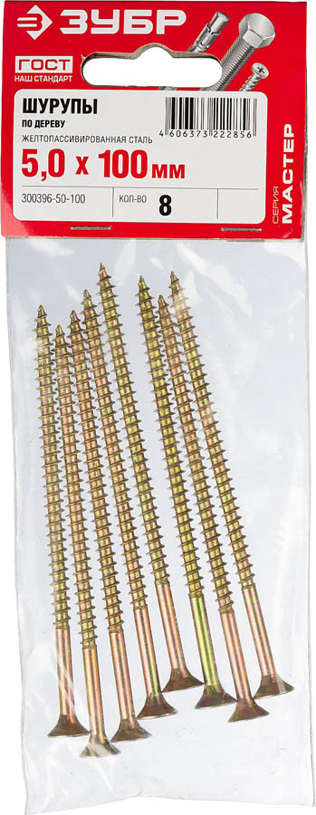 ЗУБР 100 x 5.0 мм, 8 шт., саморезы по дереву 300396-50-100