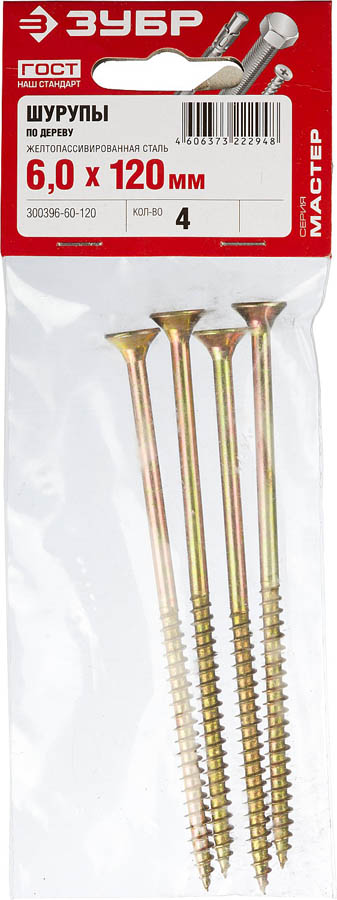 ЗУБР 120 х 6.0 мм, 4 шт., саморезы по дереву 300396-60-120