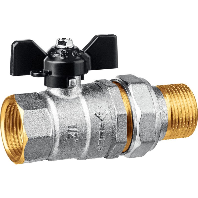 Кран шаровой ЗУБР полнопроходной с накидной гайкой ″мама-папа″, бабочка, никелированная латунь, 1/2″