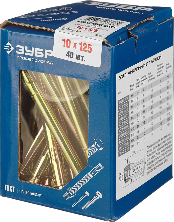 ЗУБР 10x125 мм, 40 шт., желтопассивированный, болт анкерный с гайкой 302342-10-125