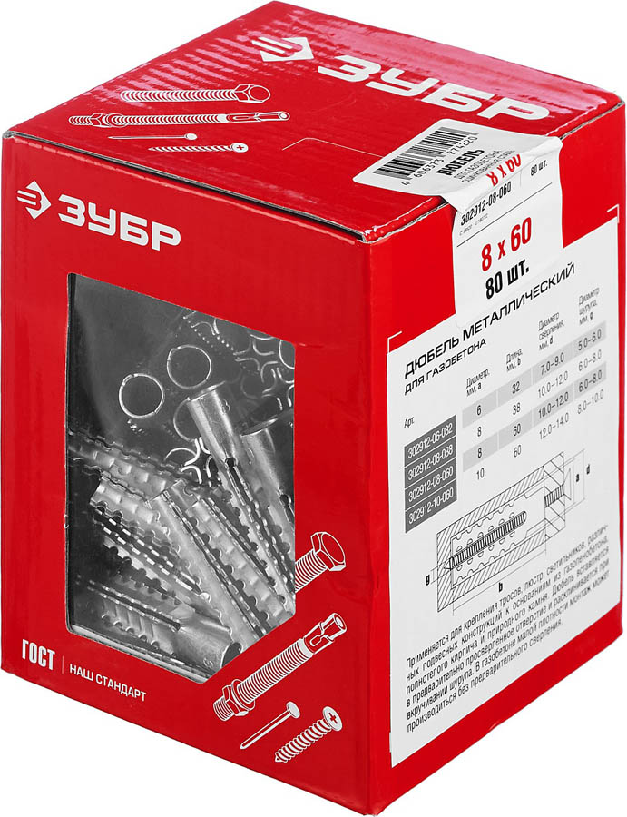 Дюбель для газобетона ЗУБР 302912-08-060, применяется для крепления различных элементов конструкций и предметов интерьера к газобетонным основаниям. Полностью металлическая конструкция позволяет использовать дюбели для газобетона в конструкциях с повышенными требованиями к огнестойкости;