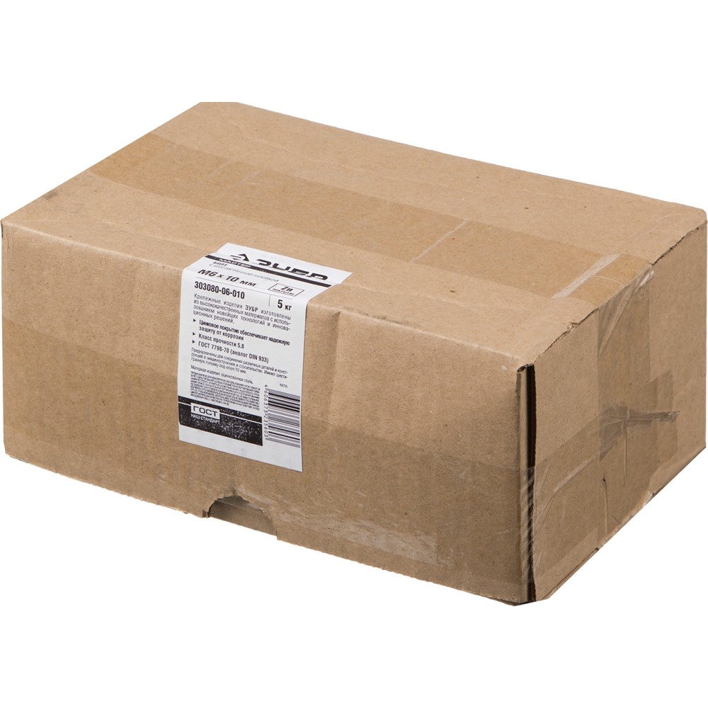 Болт ГОСТ 7798-70, M6 x 10 мм, 5 кг, кл. пр. 5.8, оцинкованный, ЗУБР