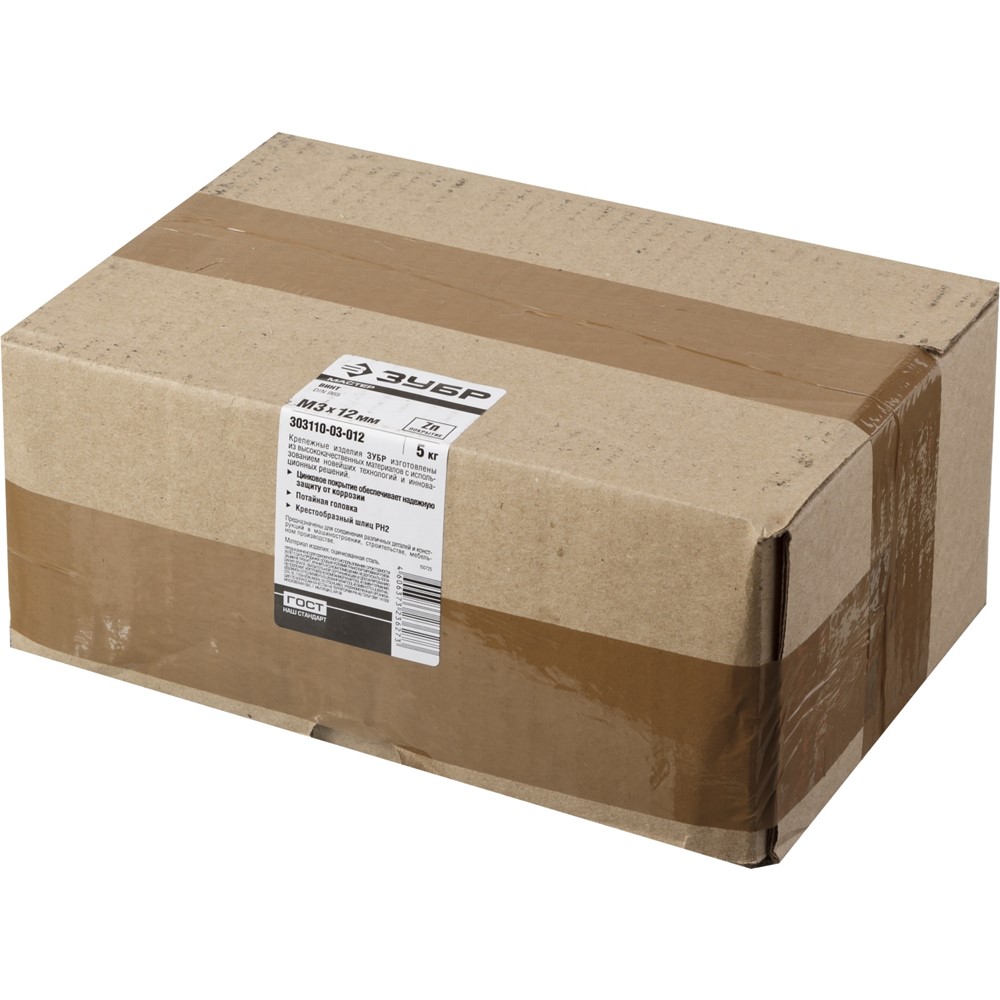 Винт DIN 965, M3 x 12 мм, 5 кг, кл. пр. 4.8, оцинкованный, ЗУБР