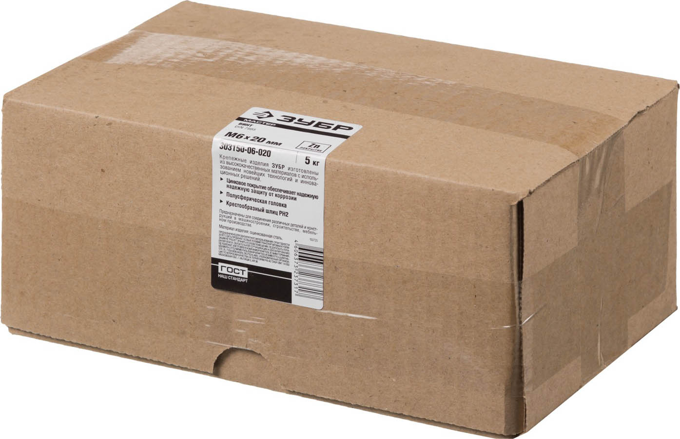 Винт DIN 7985, M6 x 20 мм, 5 кг, кл. пр. 4.8, оцинкованный, ЗУБР