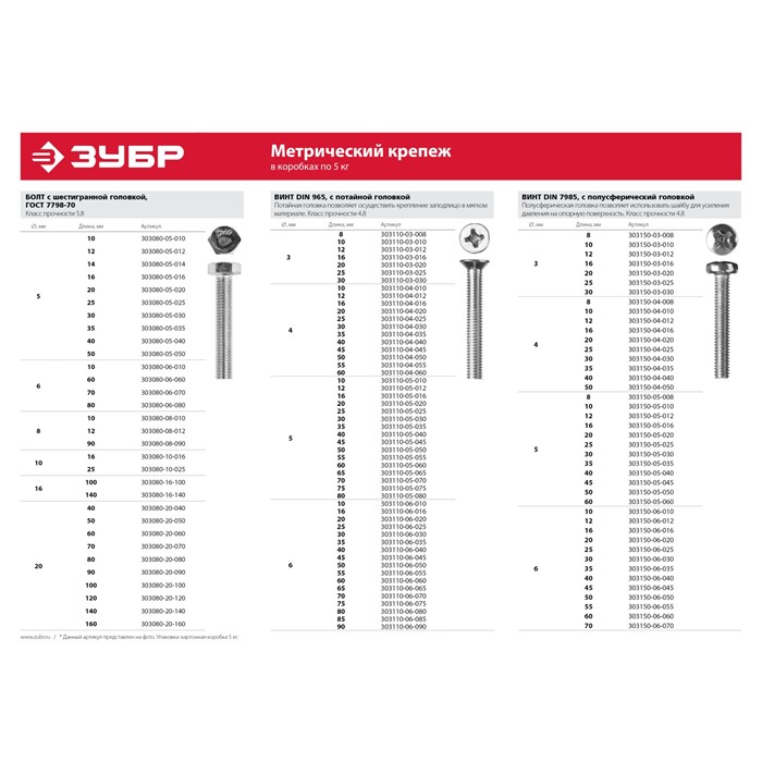 Винты DIN 7985, коробка 5 кг 303150-06-055 Зубр
