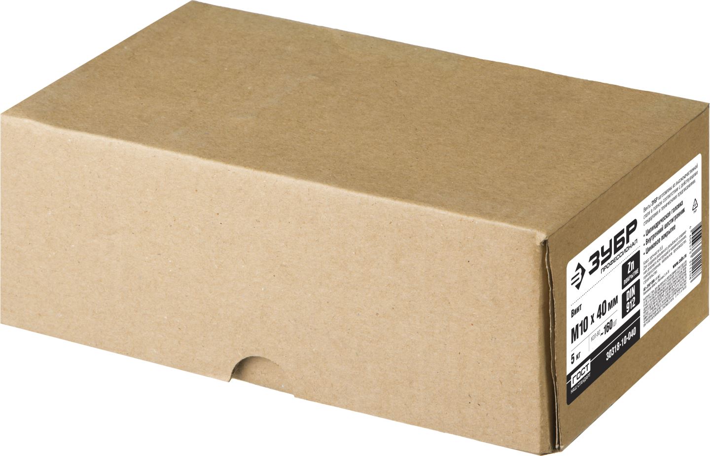 ЗУБР М10x40 мм, 5 кг (160 шт.), кл. пр. 8.8, оцинкованный, винт DIN 912 30318-10-040