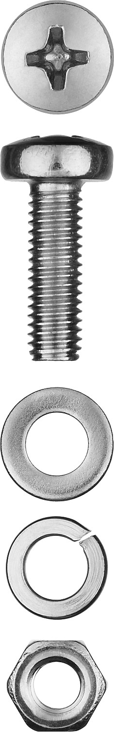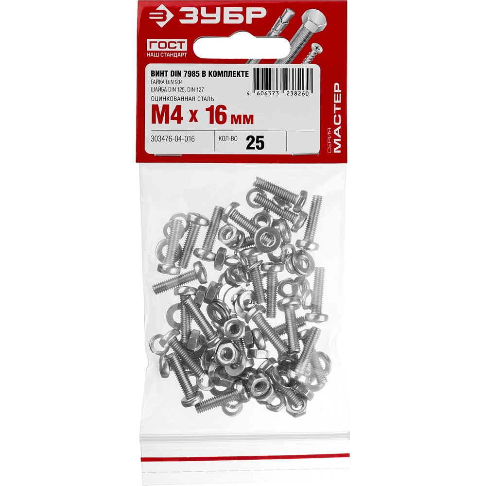 Винт (DIN7985) в комплекте с гайкой (DIN934), шайбой (DIN125), шайбой пруж. (DIN127), M4 x 16 мм, 25 шт, ЗУБР