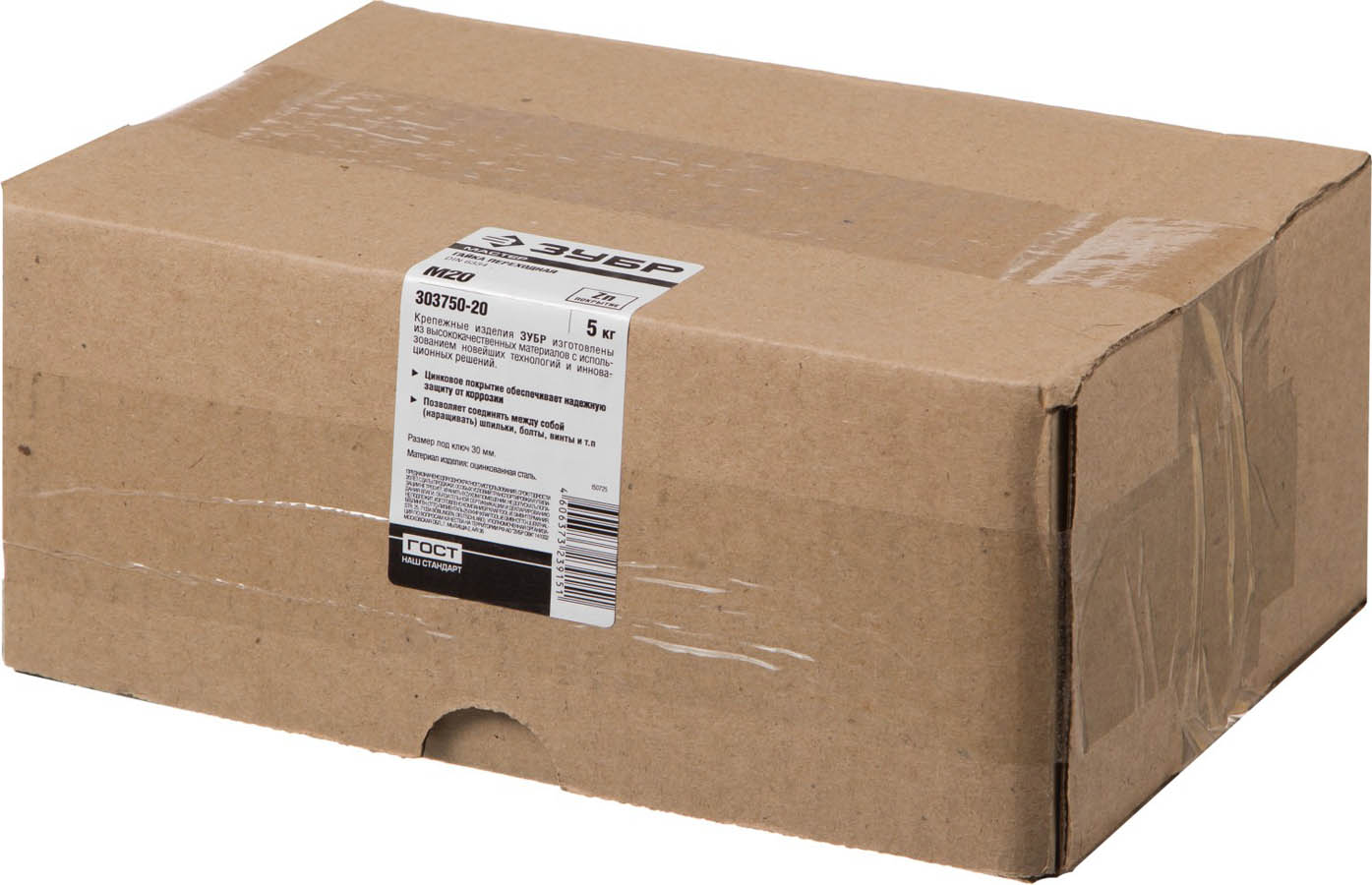 Гайка DIN 6334 переходная, M20, 5 кг, оцинкованная, ЗУБР