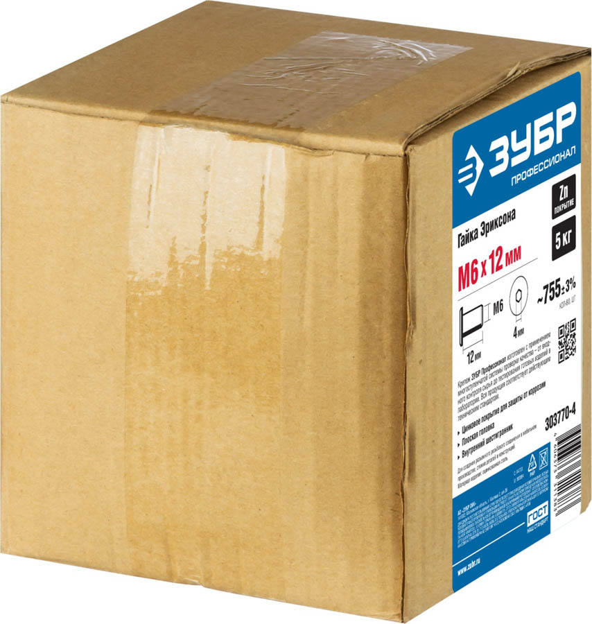 ЗУБР M6x12 мм, 5 кг (755 шт), оцинкованная, шест. 4 мм, гайка Эриксона с плоской головкой 303770-4