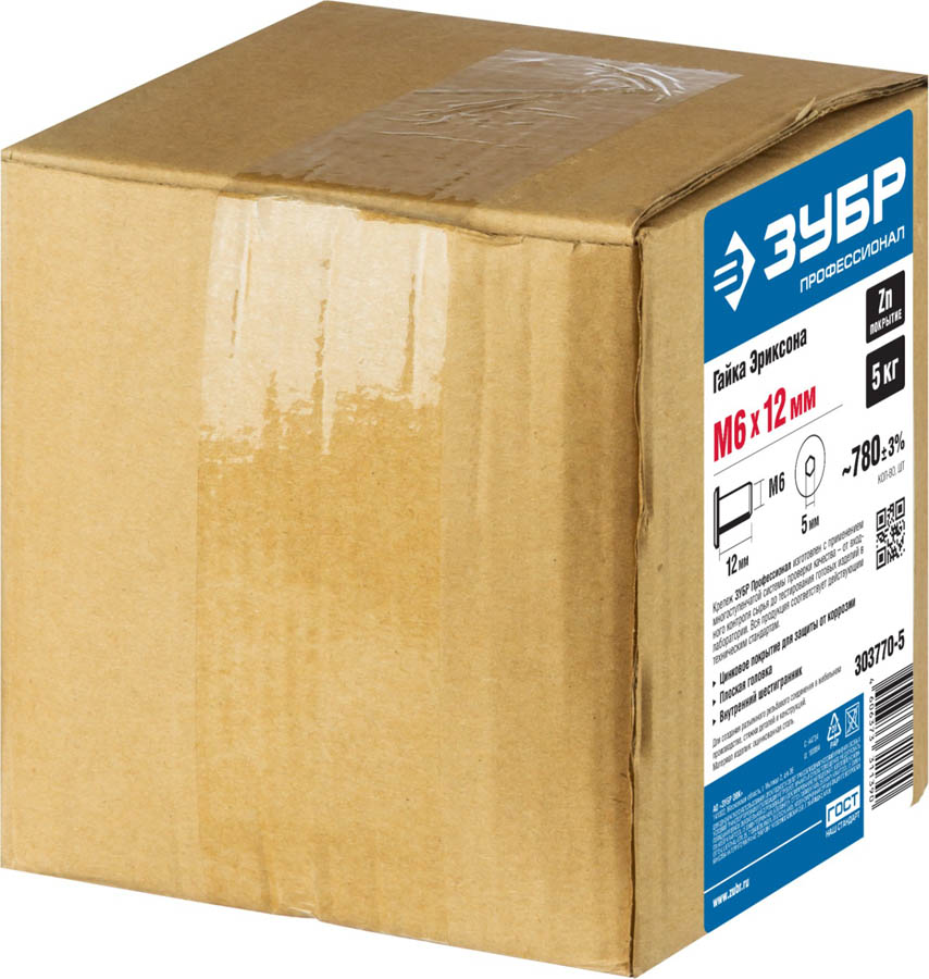 ЗУБР M6x12 мм, 5 кг (780 шт), оцинкованная, шест. 5 мм, гайка Эриксона с плоской головкой 303770-5