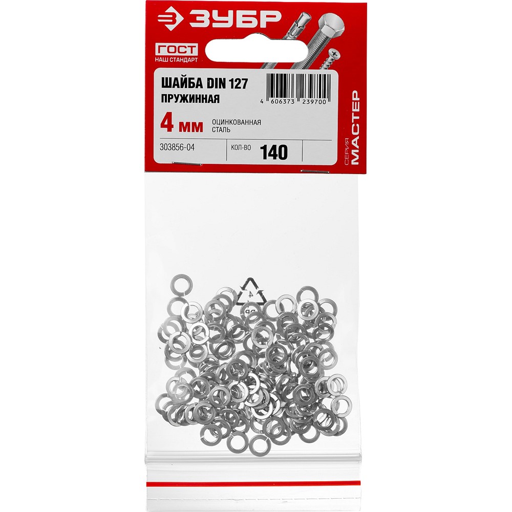 Шайба DIN 127 пружинная, 4 мм, 140 шт, оцинкованная, ЗУБР