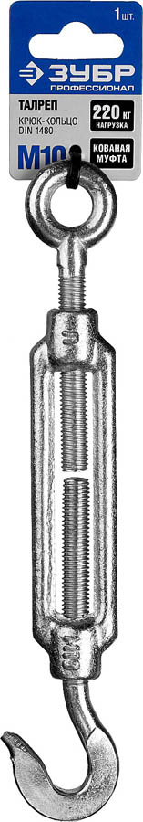 Талреп DIN 1480, крюк-кольцо, М10, 1 шт, кованая натяжная муфта, оцинкованный, ЗУБР Профессионал