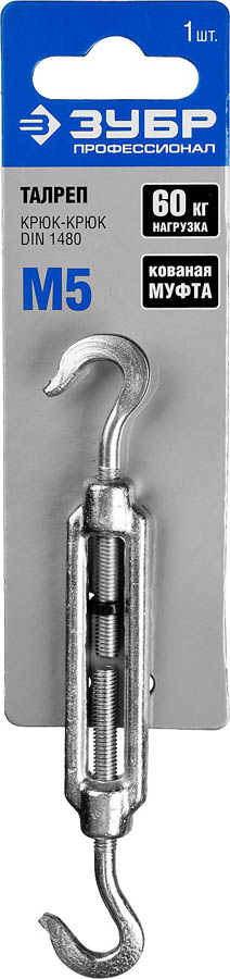 Талреп DIN 1480, крюк-крюк, М5, 1 шт, кованая натяжная муфта, оцинкованный, ЗУБР Профессионал