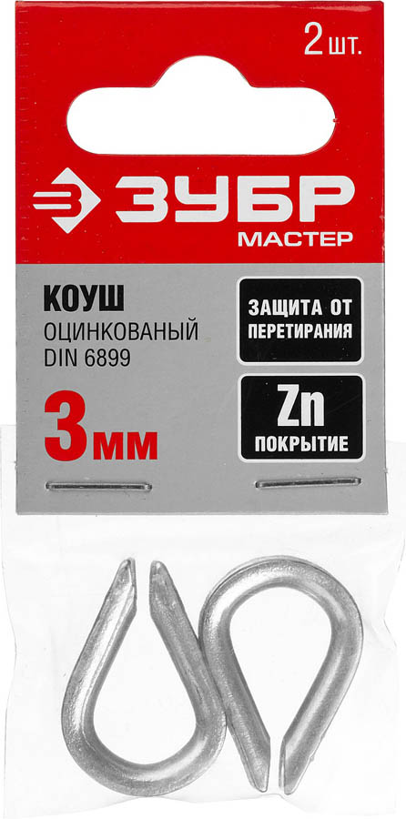 Коуш DIN 6899, 3мм, 2 шт, оцинкованный, ЗУБР