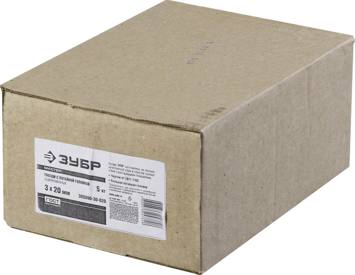 Гвозди с большой потайной головкой, оцинкованные, 20 х 3.0 мм, 5 кг, ЗУБР