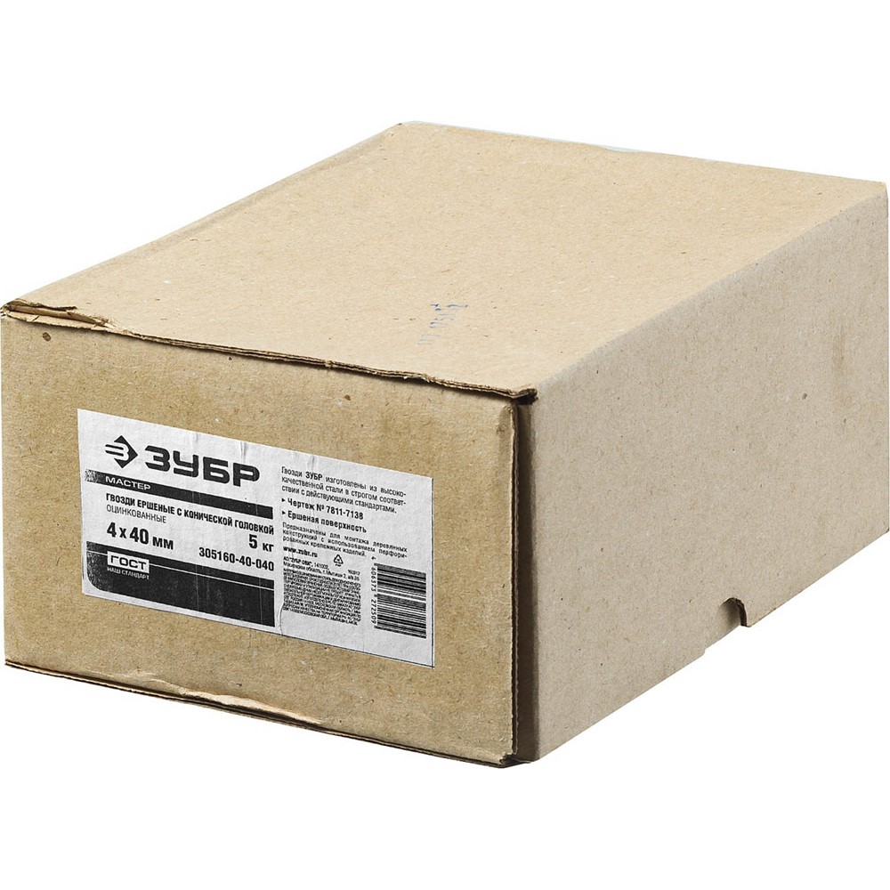 Гвозди ершеные с конической головкой, оцинкованные, 40 х 4.0 мм, 5 кг, ЗУБР