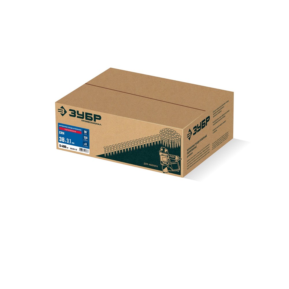 ЗУБР CRN 38 х 3.1 мм, барабанные гвозди кровельные оцинкованные, 5400 шт (305385-38)