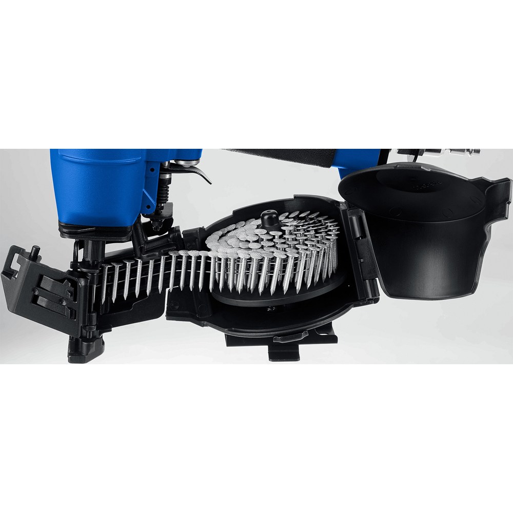 Барабанные гвозди соединены в обойму под углом 16° и забиваются при помощи гвоздезабивного пистолета (нейлера). Большая головка гвоздей оптимально подходит для монтажа листовых кровельных материалов. Использование нейлера обеспечивает высокую скорость монтажа и удобство в работе.