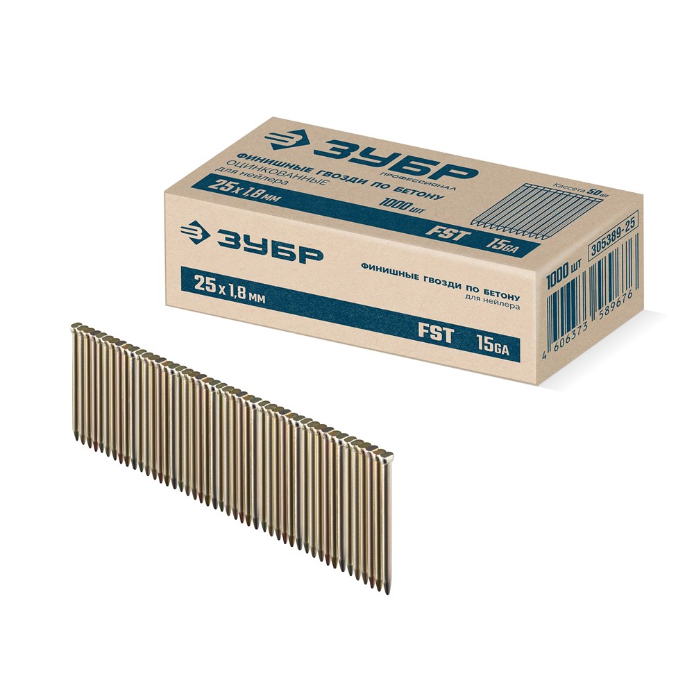 Финишные гвозди по бетону оцинкованные, калибр 15GA, 1000 шт (305389-25) ЗУБР FST 25 х 1.8 мм
