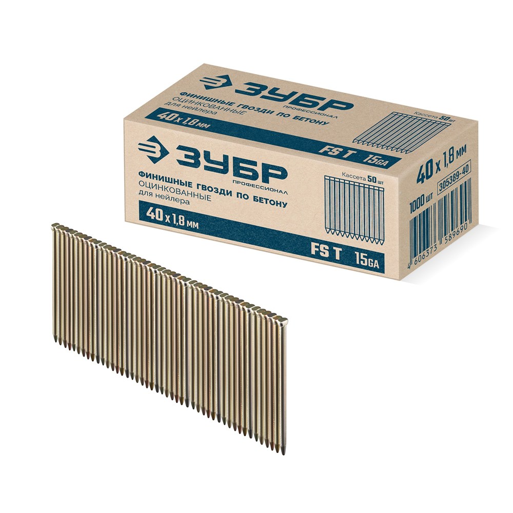 Финишные гвозди по бетону оцинкованные, калибр 15GA, 1000 шт (305389-40) ЗУБР FST 40 х 1.8 мм