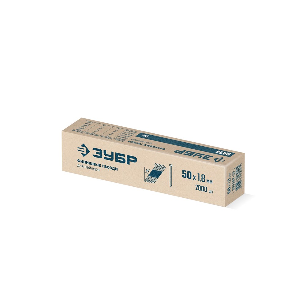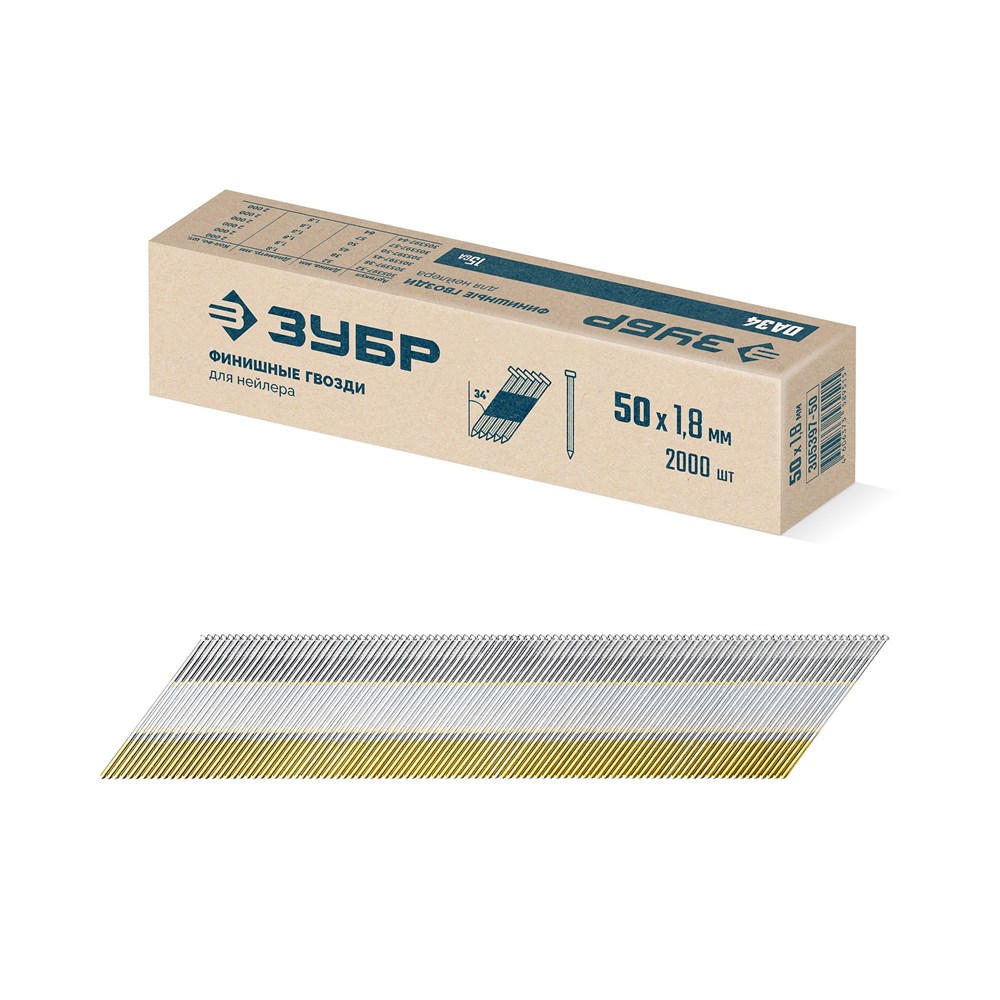 ЗУБР DA34 50 х 1.8 мм, финишные гвозди, калибр 15GA, 2000 шт (305397-50)