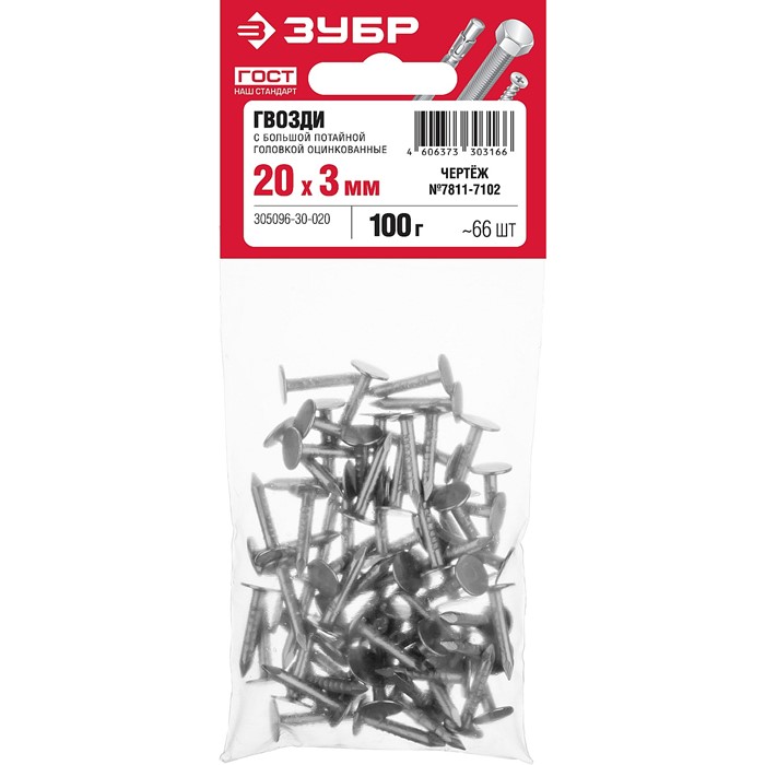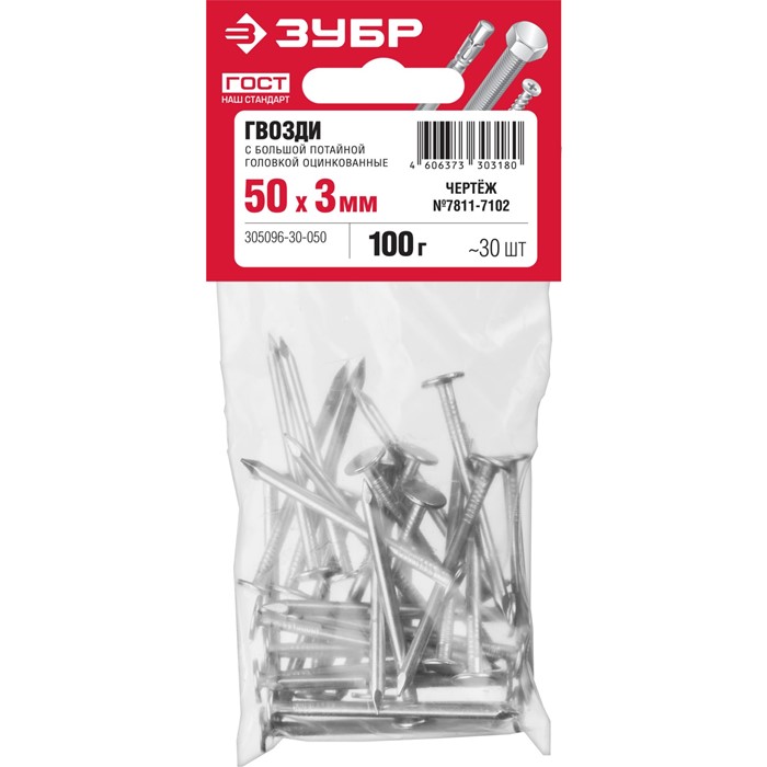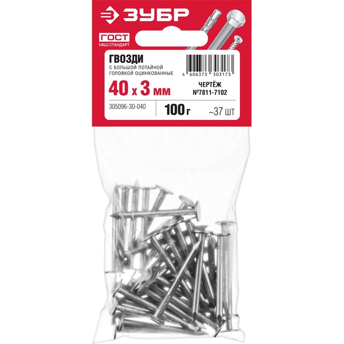 Гвозди с большой потайной головкой 3060-30-40 Зубр