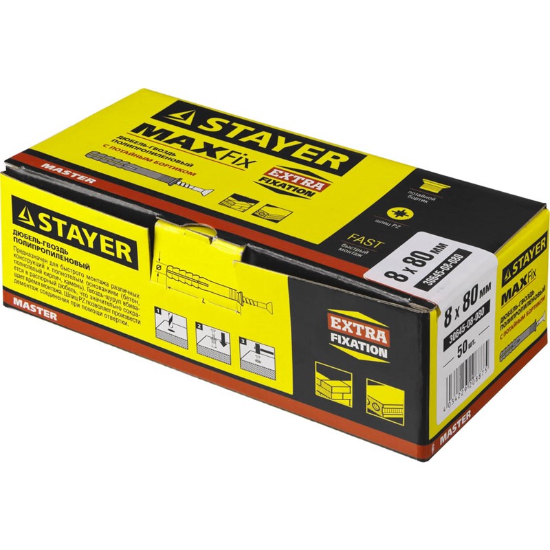 Дюбель-гвоздь STAYER 30645-08-080, предназначен для быстрого сквозного монтажа различных конструкций к полнотелым основаниям (бетон, кирпич, природный камень). Широкий ассортимент крепежной продукции STAYER позволяет подобрать дюбель-гвоздь нужного размера для крепления разнообразных конструкций.