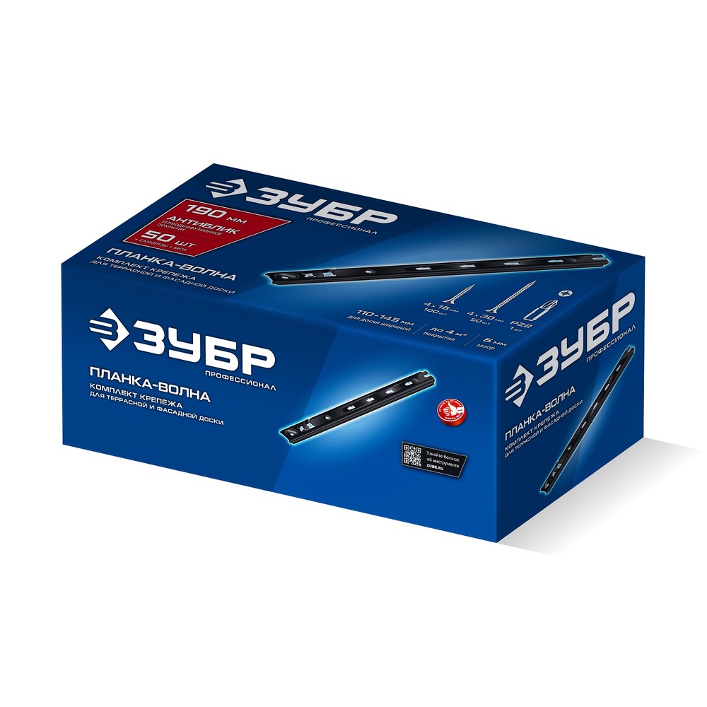 ЗУБР Планка-Волна Антиблик 190 мм, крепеж для фасадной и террасной доски, термодиф. покрытие, с саморезами и битой, 50 шт, Профессионал (307031-190)