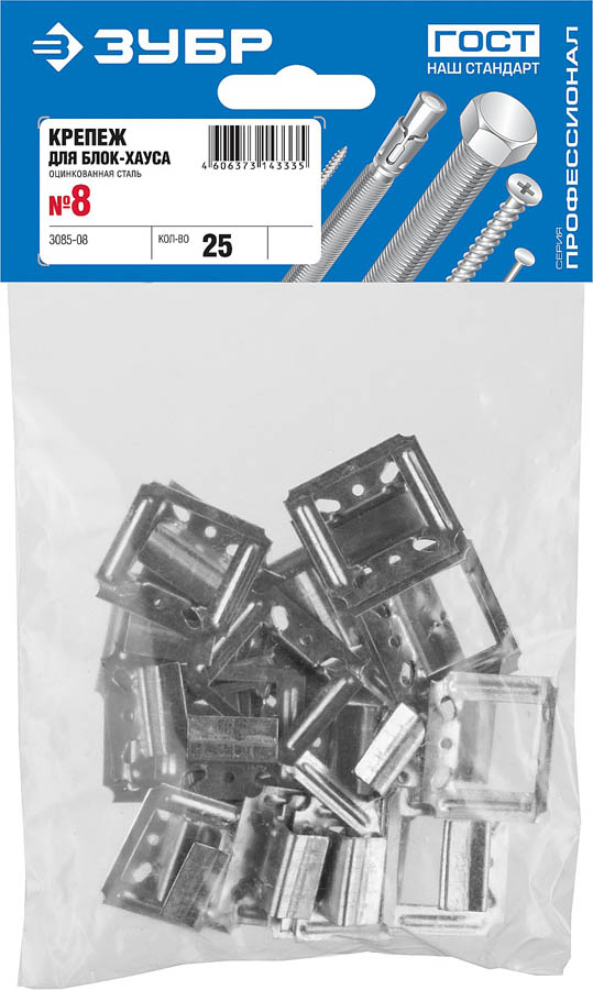 Крепежные скобы для вагонки (кляймеры) ЗУБР 3085-08, существенно ускоряют и облегчают проведение отделочных работ, обладая при этом рядом преимуществ по сравнению с традиционным креплением при помощи гвоздей. Установленная скоба позволяет вагонке двигаться вдоль продольной оси, компенсируя напряжения, возникающие при усадке дома. Скоба прибивается к лаге и прижимает вагонку, исключая образование на ней сколов и трещин. При изменении температуры и влажности исключается коробление древесины. Крепеж незаметен после установки, придает конструкции эстетичный внешний вид. Цинковое покрытие надежно защищает от коррозии. Для скрытого монтажа вагонки, ламинированных панелей, панелей МДФ.