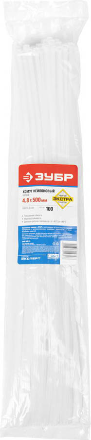 Кабельные стяжки белые КС-Б1, 4.8 x 500 мм, 100 шт, нейлоновые, ЗУБР Профессионал