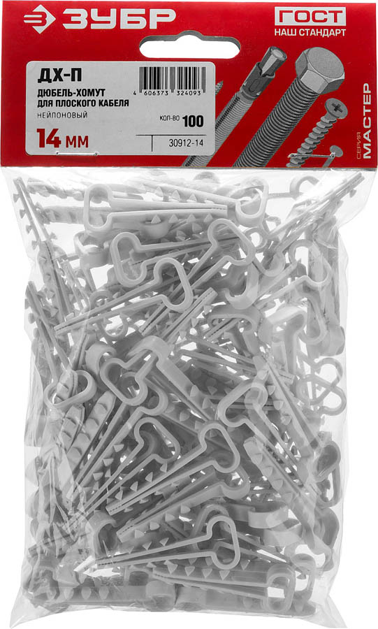 Дюбель-хомут для плоского кабеля ДХ-П, 14 мм, 100 шт, нейлоновый, ЗУБР