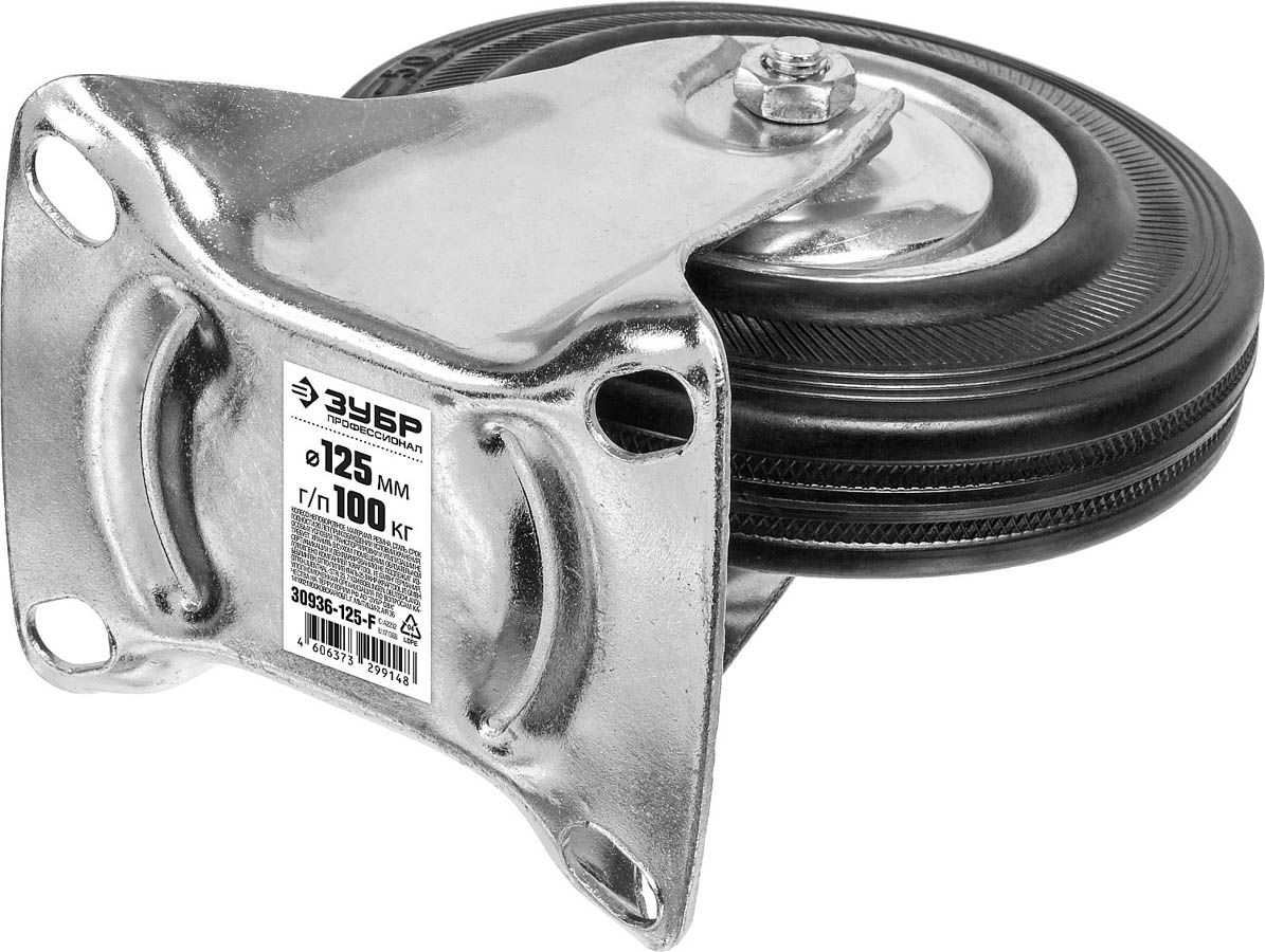 Колесо неповоротное d=125 мм, г/п 100 кг, резина/металл, игольчатый подшипник, ЗУБР Профессионал