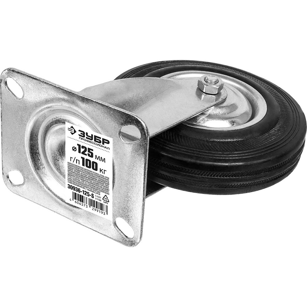 Колесо поворотное d=125 мм, г/п 100 кг, резина/металл, игольчатый подшипник, ЗУБР Профессионал
