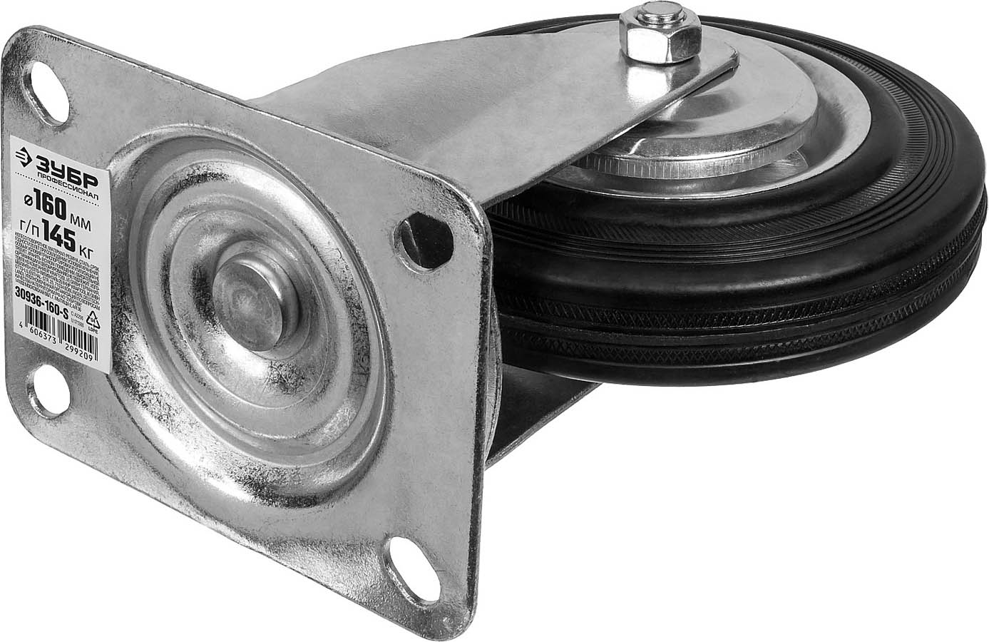 Колесо поворотное d=160 мм, г/п 145 кг, резина/металл, игольчатый подшипник, ЗУБР Профессионал