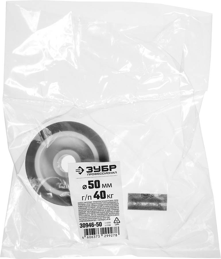 Колесо d=50 мм, г/п 40 кг, термопластич. резина/полипропилен, ЗУБР Профессионал