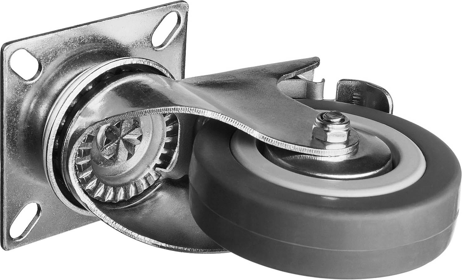 Колесо поворотное с тормозом d=75 мм, г/п 50 кг, резина/полипропилен, ЗУБР