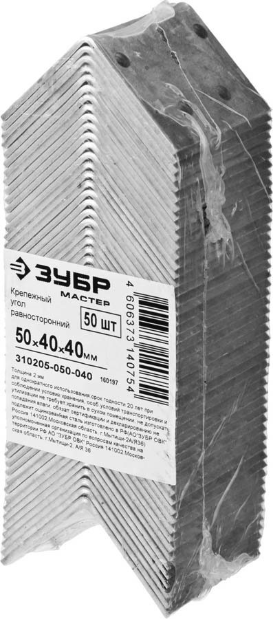 ЗУБР 50х40х40 мм, угол крепежный асимметричный 310205-050-040