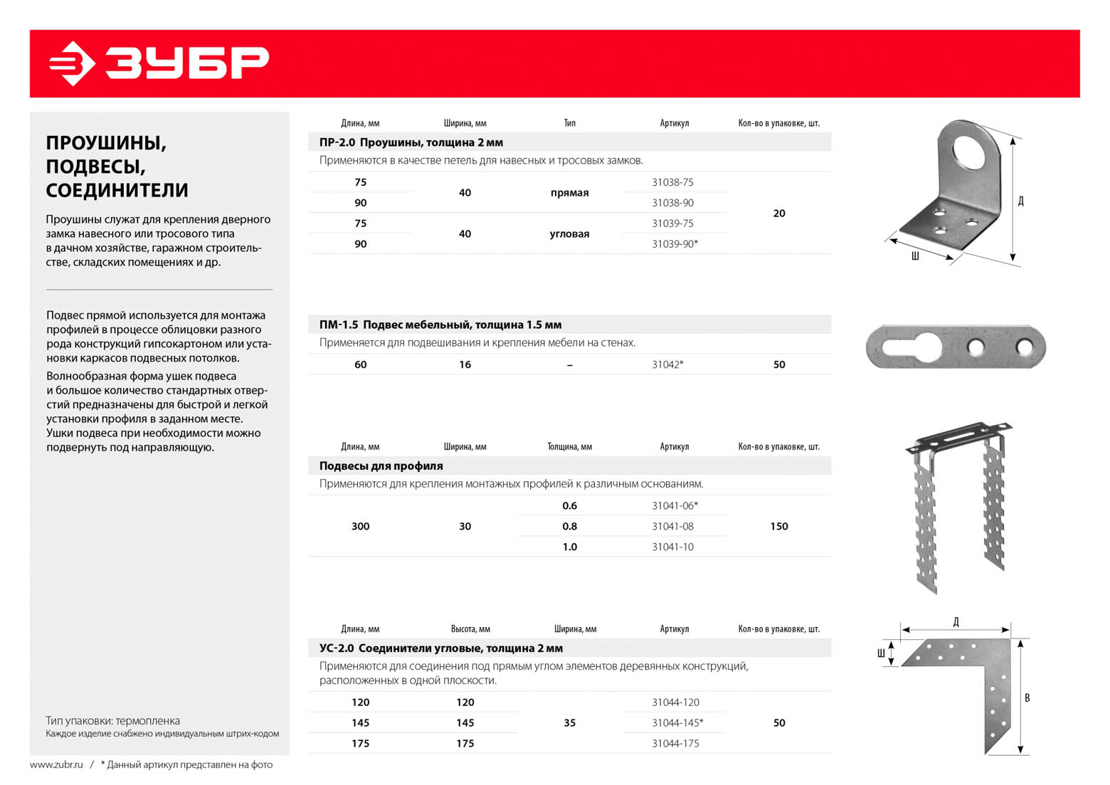 ЗУБР 300 х 30 х 1.0 мм, подвес для профиля ПП-1.0 31041-10