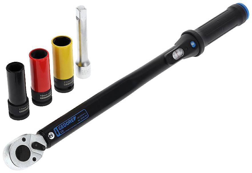 Динамометрический ключ в комплекте с 3 головками 17, 19, 22мм и удлинителем на 125 мм, подойдет для работы с крепежом при контроле усилия.