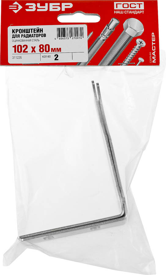 Кронштейн для радиаторов угловой, оцинкованный, 2 шт, ЗУБР