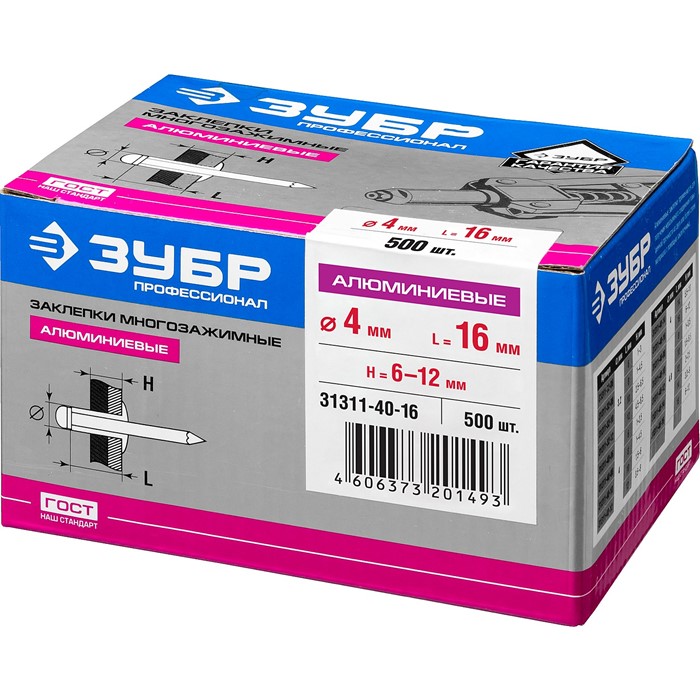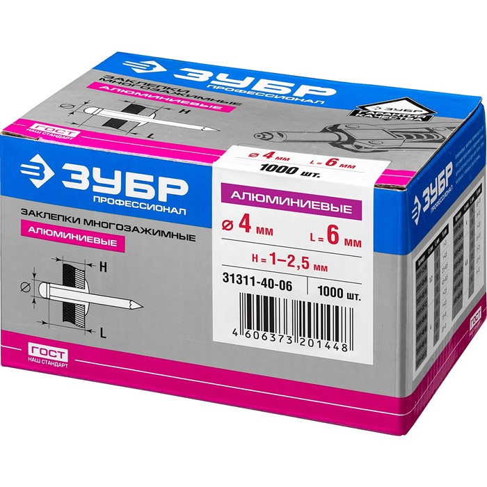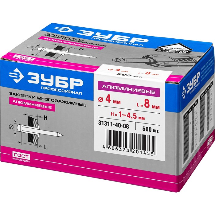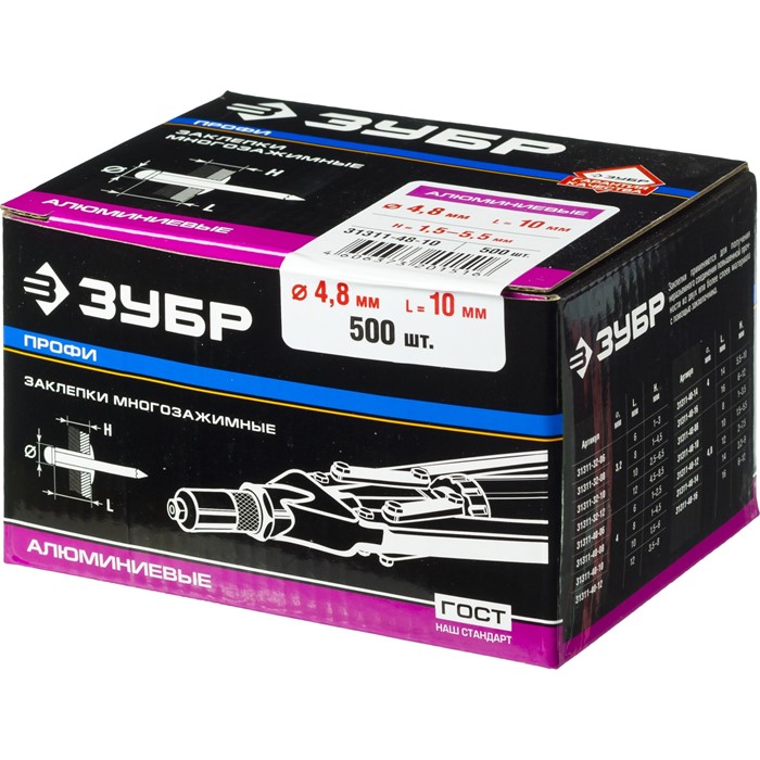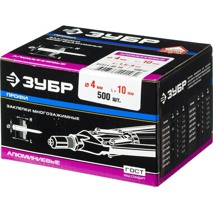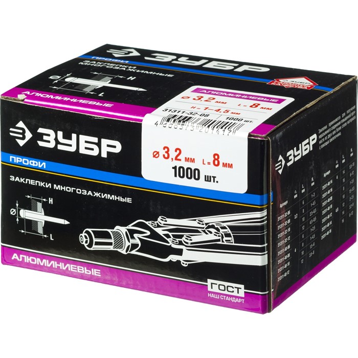Заклепки многозажимные алюминиевые, коробка 31311-32-08 Зубр