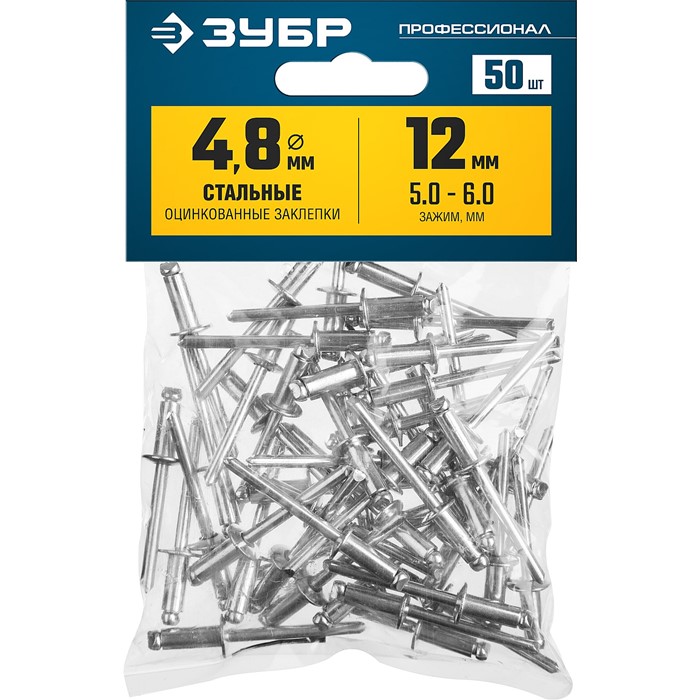 - Корпус заклепки изготовлен из оцинкованной стали, стойкой к коррозии,
