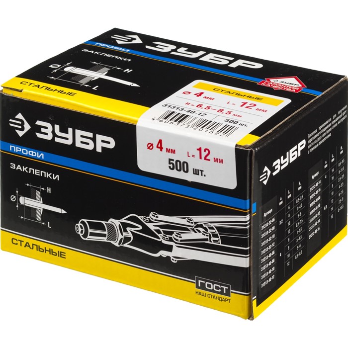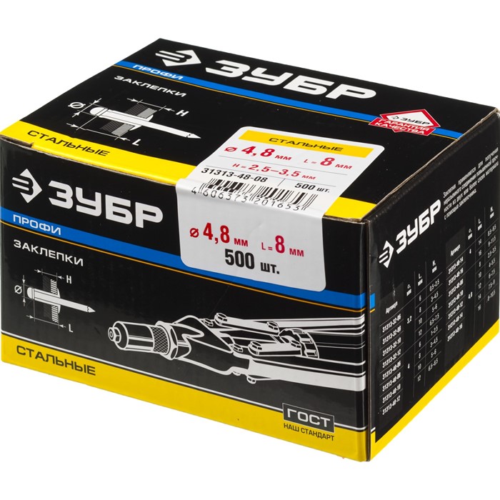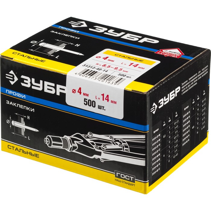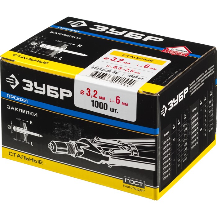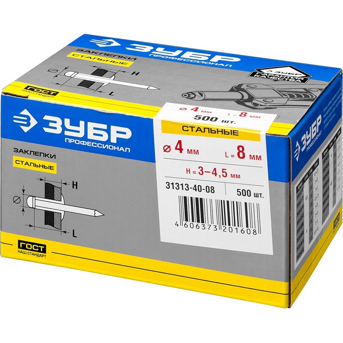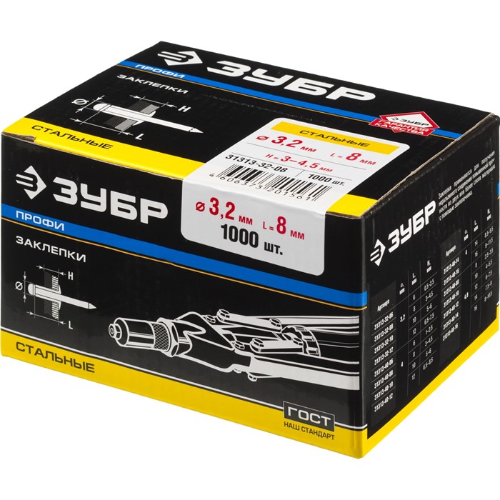 Заклепки стальные, коробка 31313-32-08 Зубр