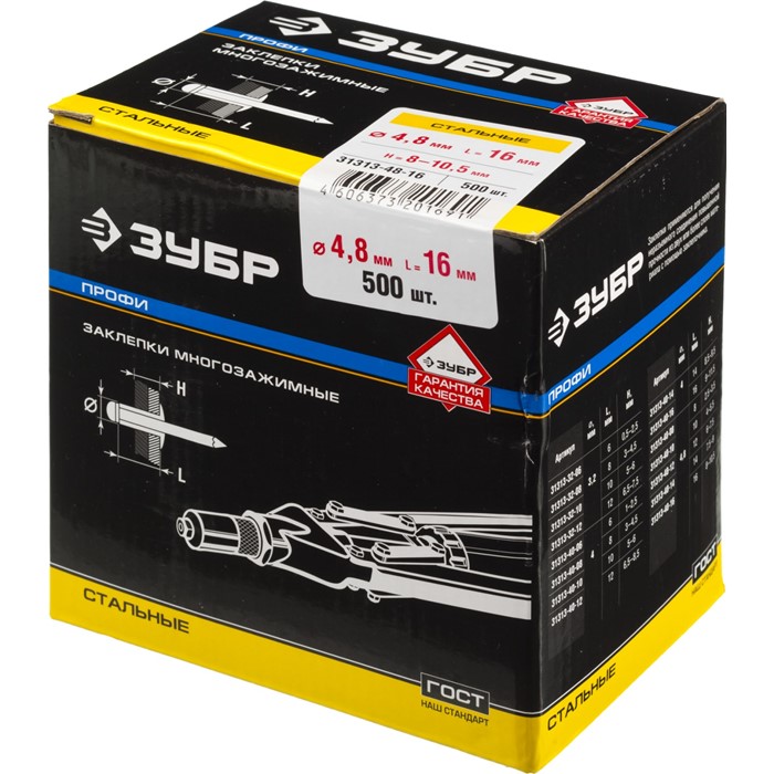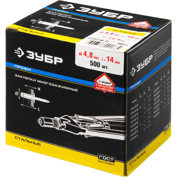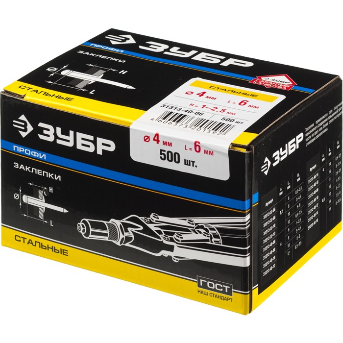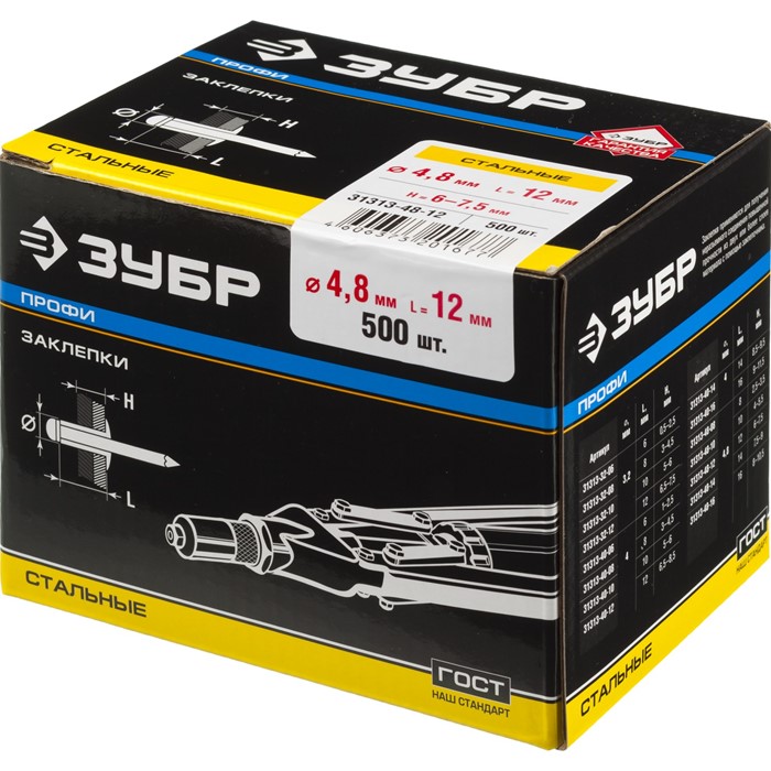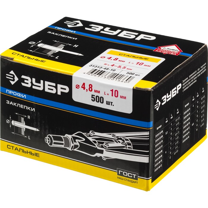- Корпус заклепки изготовлен из высококачественной оцинкованной стали, что обеспечивает защиту от коррозии,