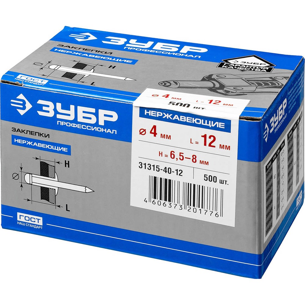 ЗУБР 4.0x12 мм, 500 шт., заклепки из нержавеющей стали 31315-40-12