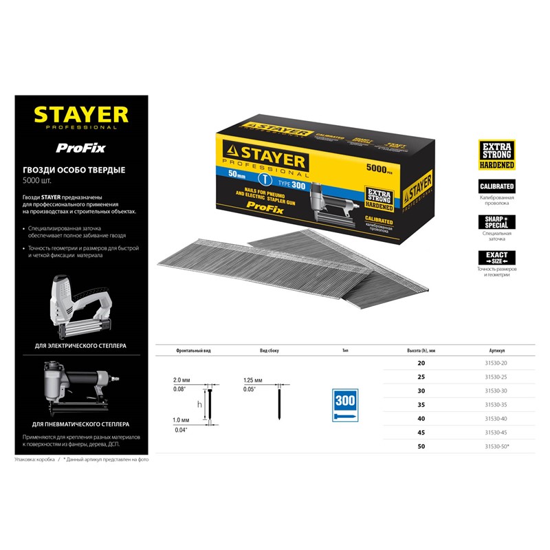 STAYER 35 мм гвозди для нейлера тип 300, 5000 шт