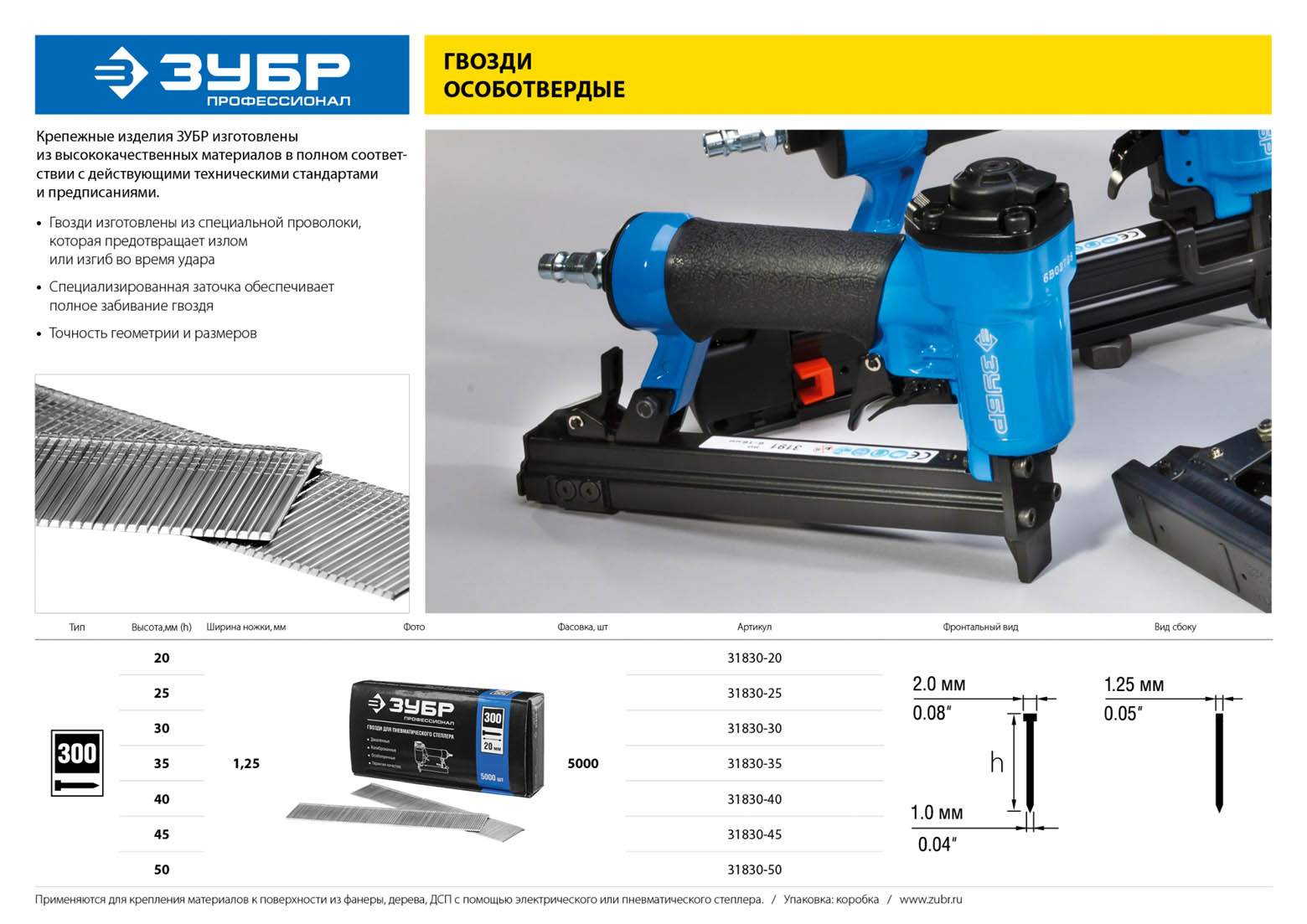 Гвозди ЗУБР 31830-45, предназначены для крепления тканых материалов (ткани, обивки, холста) к поверхностям из дерева, ДСП и т.п. с помощью скобозабивного пистолета.