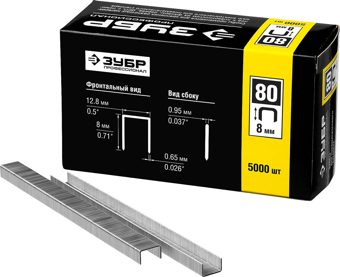 ЗУБР 8 мм скобы для степлера тонкие широкие тип 80, 5000 шт