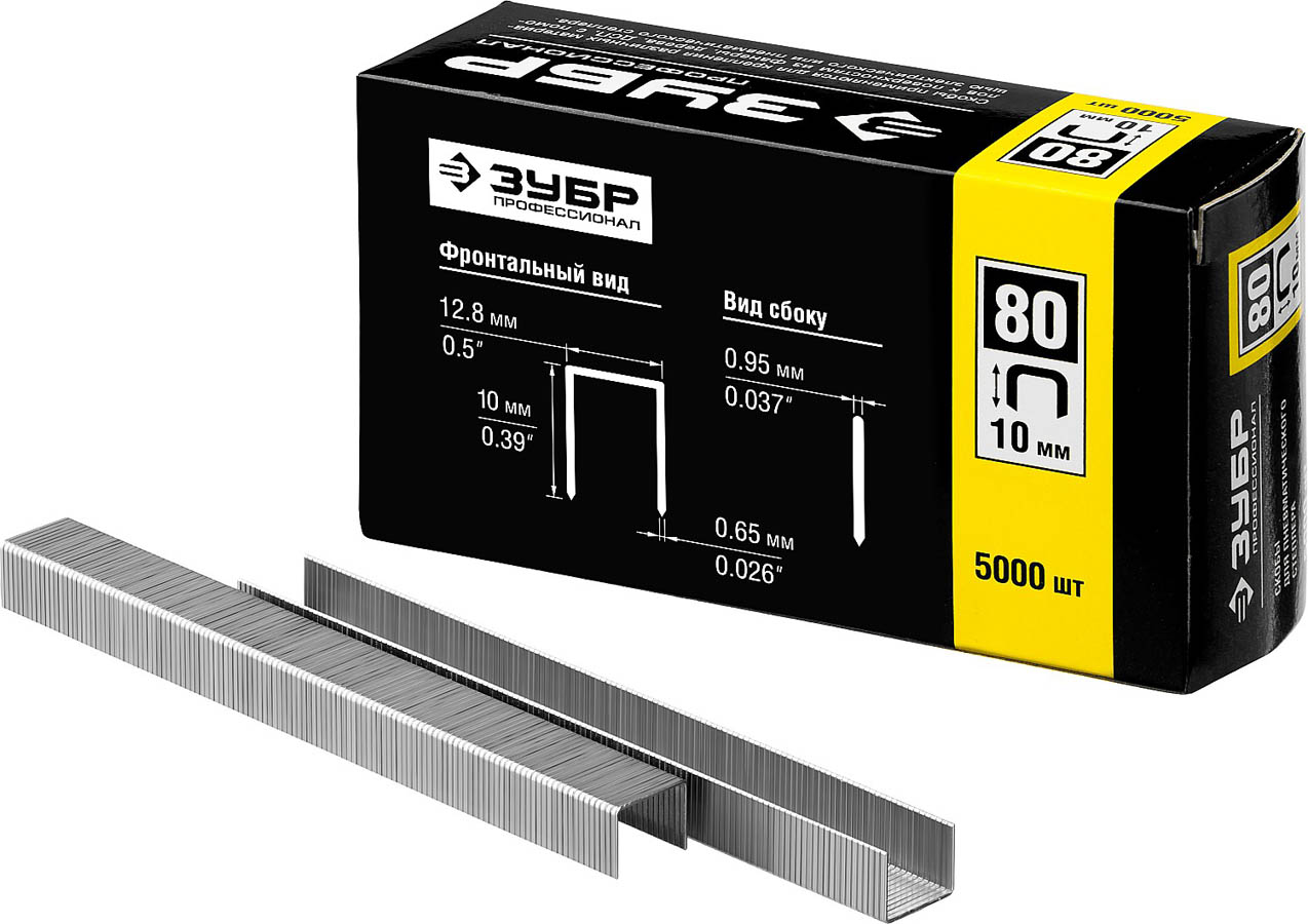 ЗУБР 10 мм скобы для степлера тонкие широкие тип 80, 5000 шт